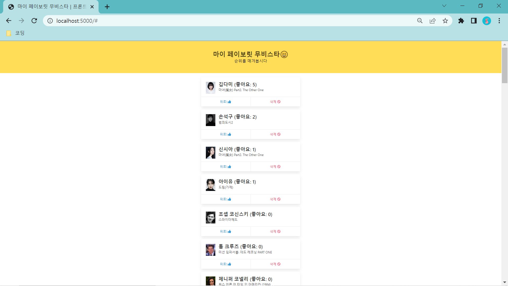 <title>마이 페이보릿 무비스타 | 프론트-백엔드 연결 마지막 예제!</title>