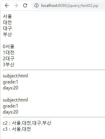 var c3 = $.map(city, function(value, index){ //매개변수의 위치가 each구문과 반대임